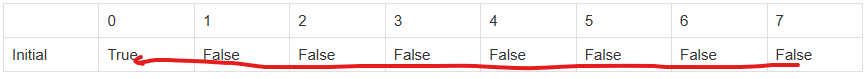 | Initial | True | False | False | False | False | False | False | False |