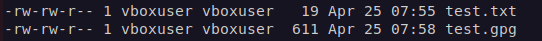 커맨드 실행 후에는 아래와 같이 test.gpg 파일이 생성되었습니다.
