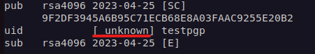 그런데, 가져오기 후에 PGP 키를 확인해 보면, 아래와 같이 trust 상태가 unknown으로 나오게 됩니다.