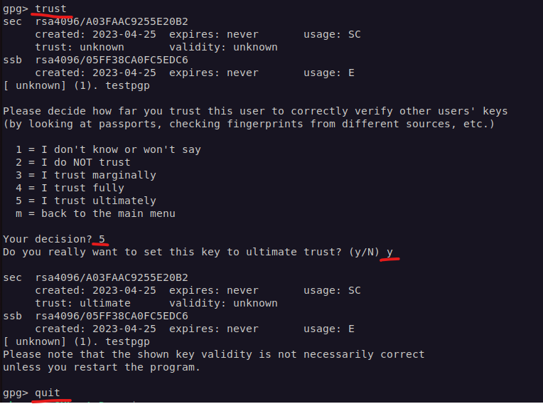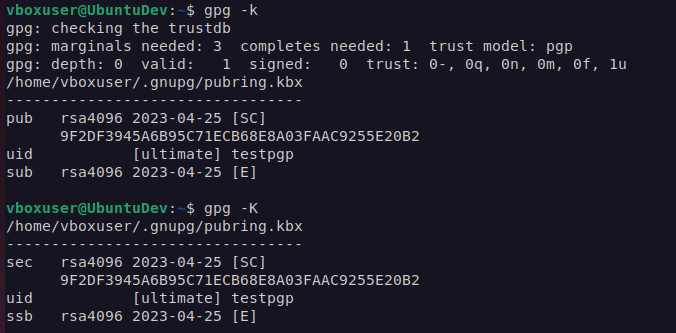 pgp 키 정보를 확인해 보면 trust 상태가 "ultimate" 으로 변경된 것을 확인할 수 있습니다.