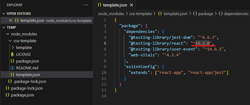 2. 이유는 create-react-app 에서 참조하는 모듈 cra-template 에서, react 18을 참조하는 오래된 라이브러리를 참조하고 있기 때문임