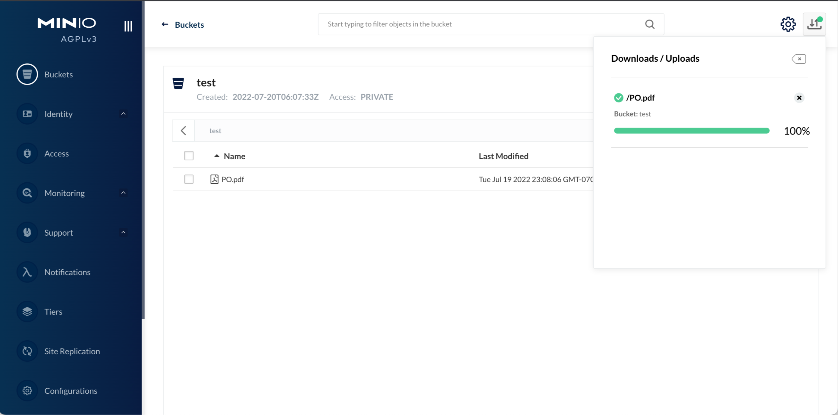 console.log("Object uploaded successfully: ", result);