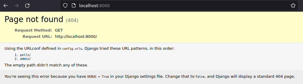 아래 화면은 Ubuntu desktop 에서 실행했을 때의 결과인데, django 404 error 페이지가 나오지만 실행은 잘 되는 것을 알 수 있었습니다. 실제로는 localhost 대신 서버 주소를 입력해야합니다.